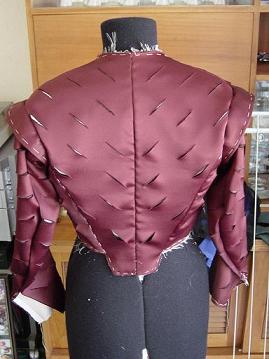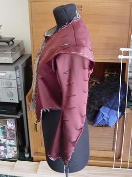 The back halves were then laid out side by side, and checked for consistency of slashing placement. They were not 100% matching, but was altered as best as possible. This problem was fixed in the next slashing panels by slashing all layers at once.