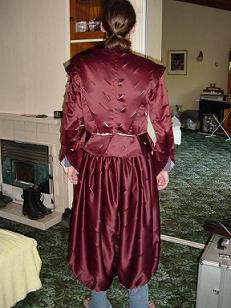 The waistband was tacked to the pants in the layout in preparation for final sewing. The wings were pinned to the doublet. At this stage it looked like the pictures below.