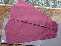 Both sections of front were laid side by side and checked for consistency. Note the tacking has not been removed at this stage to make it easier to sew.