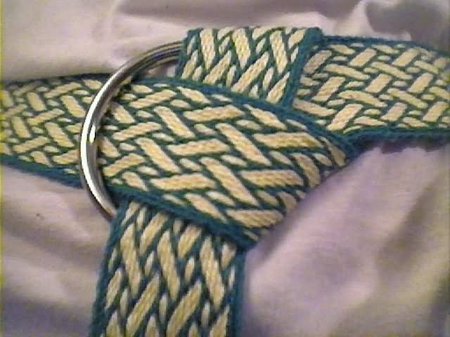 Around 1.25” wide, making it suitable for things like belts. This is not 100% accurate as the original was a brocade with metal thread. Crochet cotton used at time due to level of skill and availability of materials.Pictures: